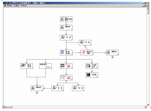 NV-IVR是一個使用方便、功能強(qiáng)大支持持續(xù)開發(fā)的開放式產(chǎn)品。NV-IVR運(yùn)用圖形化按鈕,直觀顯示各個子模塊的主題,使用者只要通過簡單的拖曳、配置就可以生成一棵樹狀流程圖,直觀地對照IVR的實際運(yùn)行流程。用戶需要對實際流程進(jìn)行修改,只須對流程圖修建即可。NV-IVR可以完成以下一些主要功能: