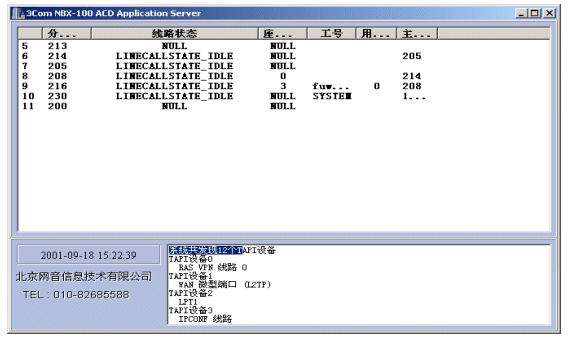 NBX呼叫中心的核心設(shè)備是3Com公司的NBX網(wǎng)絡(luò)交換機(jī),NBX網(wǎng)絡(luò)交換機(jī)支持開放式電話開發(fā)平臺TAPI2.X,TAPI它是Microsoft電話技術(shù)應(yīng)用程序編程界面標(biāo)準(zhǔn),運(yùn)用TAPI可以方便、高效地完成針對語音線路的控制開發(fā),從而完成自動語音應(yīng)答(IVR)、自動話路分配(ACD)、以及坐席接待、計費(fèi)、錄音等需求。使用TAPI這種標(biāo)準(zhǔn)使得用戶可以集成第三方CTI程序以完成各種高級需求。