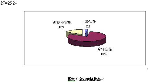 對大多數(shù)企業(yè)來說,對CRM還處于關注階段,只有7家企業(yè)表示已經開始實施,在的電話訪問中,了解到這7家企業(yè)的實施的主要是在渠道管理和客戶呼叫中心等方面,但表示今年會開始實施的卻超過8成。