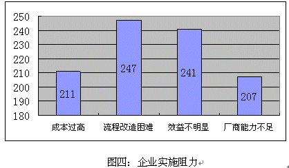 b)流程改造困難,對這個困難的擔心的企業(yè)數(shù)量最多,考慮到國內企業(yè)的現(xiàn)實管理問題,流程改造必然與現(xiàn)實的利益發(fā)生矛盾,引起的阻力不可輕視。