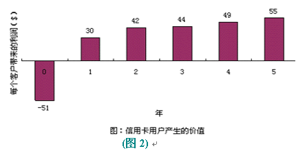 以信用卡服務為例,爭取一個新的用戶平均要51美圓,用于廣告、推銷和開戶等開支。用戶開始時花錢很少,但為公司帶來一定的利潤。但如果用戶繼續(xù)使用到第二年,就會為公司帶來更多的經濟效益,因為公司與客戶之間的信任和客戶對公司的滿意,致使客戶更多地通過信用卡消費。(圖:"信用卡用戶產生的價值")用戶貢獻在增加,公司的運作費用卻在不斷減低。信用卡公司可以不斷減少對客戶信用的審核時間。保持長期的客戶關系,還可以減少廣告支出,客戶本身就是一個免費的廣告資源。很多人在消費前喜歡聽取朋友的意見,覺得比廣告更可信。