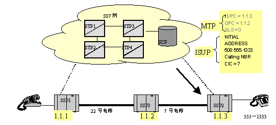當(dāng)消息到達(dá)交換局1.1.3(SSP2)時(shí),MTP層識(shí)別到這一消息是發(fā)給它的。