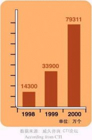 - 截至2000年底,我國總共擁有客戶服務中心座席數(shù)量7.9萬多個(不包括尋呼企業(yè)的座席數(shù)),市場總規(guī)模達到83.59億元。