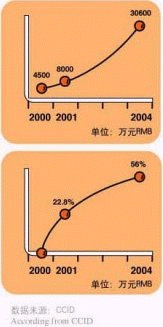 - 在CRM方面,2000年產(chǎn)值為50億美元,預計在2004年市場產(chǎn)值將達到190億美元。