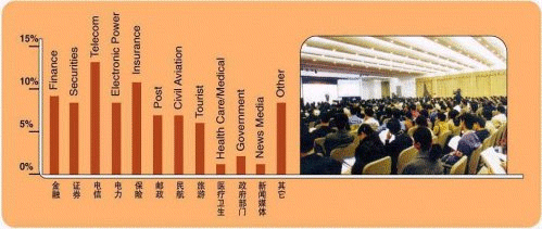 展會期間,我們將邀請近20,000名來自電信、保險、銀行、證券、郵政、電力、民航、旅游、鐵路、物流、制造業(yè)、房地產(chǎn)、醫(yī)藥、政府部門及煙草等行業(yè)的專業(yè)觀眾前來參觀。