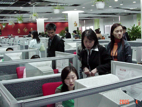 。。2005年4月12日,2005中國國際呼叫中心與客戶關(guān)系管理大會組織了呼叫中心現(xiàn)場參觀,第一參觀路線為世紀(jì)新元和盛大網(wǎng)絡(luò),第二參觀路線為招商銀行信用卡中心(CCCS認(rèn)證五星級呼叫中心)和平安財險,以下是相關(guān)圖片報道: