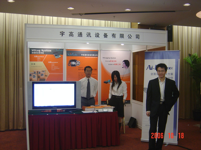 。。2006年10月18日,2006保險業(yè)呼叫中心應(yīng)用暨電話營銷高峰研討會在北京天鴻科園大酒店隆重召開,以下是展廳參觀的相關(guān)圖片報道: