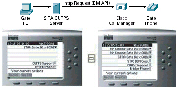 Manager發(fā)出一個(gè)HTTP請求,獲取該航空公司的設(shè)備檔案。如果該業(yè)務(wù)代表位于某個(gè)登機(jī)口柜臺,CUPPS服務(wù)器將請求更改多部電話的配置。這將通過多個(gè)HTTP請求實(shí)現(xiàn)。應(yīng)當(dāng)指出的是,允許人工登陸柜臺電話的Extension