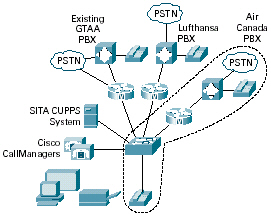 Median Option 81c PBX來取代他們已有的Centrex服務(wù)。這個(gè)PBX為整個(gè)機(jī)場提供了超過2500條線路,其中包括所有關(guān)鍵任務(wù)型區(qū)域,例如現(xiàn)有的控制塔和所有機(jī)場登機(jī)柜臺。讓形勢更加不利的是,該PBX已經(jīng)銷售完畢,正在由一家本地電話公司負(fù)責(zé)管理。該公司是思科在數(shù)據(jù)方面的合作伙伴。它拒絕與思科合作安放IP電話。另外一個(gè)關(guān)鍵的考慮因素是該機(jī)場最主要的航空公司租戶——加拿大航空——也是Nortel