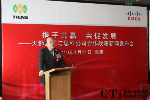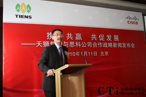 CTI論壇(ctiforum)1月12日消息(記者 張塵):2010年1月11日,北京——“攜手共贏 共促發(fā)展——天獅集團(tuán)與思科公司戰(zhàn)略項(xiàng)目新聞發(fā)布會(huì)”在北京召開(kāi),雙方共同宣布,天獅集團(tuán)國(guó)際健康產(chǎn)業(yè)園網(wǎng)絡(luò)平臺(tái)成功啟用,并正式達(dá)成合作戰(zhàn)略。天獅集團(tuán)董事長(zhǎng)兼總裁李金元先生與思科全球副總裁、思科中國(guó)副董事長(zhǎng)兼總裁林正剛先生出席新聞發(fā)布會(huì),并進(jìn)行簽約儀式。通過(guò)本次強(qiáng)強(qiáng)聯(lián)合,思科面向服務(wù)的網(wǎng)絡(luò)架構(gòu)(SONA)全面部署于天獅集團(tuán)國(guó)際健康產(chǎn)業(yè)園,為天獅集團(tuán)業(yè)務(wù)的穩(wěn)定持續(xù)發(fā)展以及信息化水平的進(jìn)一步提升提供了可靠保證,同時(shí)也為雙方未來(lái)更深層次的合作打下了堅(jiān)實(shí)的基礎(chǔ)。