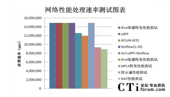 QFP的PPE能夠訪(fǎng)問(wèn)整個(gè)數(shù)據(jù)包,雖然在僅進(jìn)行簡(jiǎn)單轉(zhuǎn)發(fā)時(shí)報(bào)文處理速度稍低,但在并發(fā)部署多項(xiàng)高級(jí)服務(wù)時(shí),性能并沒(méi)有明顯的下降。