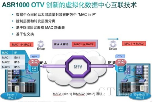 總之,不同的應(yīng)用需要不同類型的網(wǎng)絡(luò)連接特性,網(wǎng)絡(luò)的第二層和三層連接的組合可能會(huì)被要求支持不同的應(yīng)用。思科ASR1000提供的領(lǐng)先的數(shù)據(jù)中心的網(wǎng)絡(luò)虛擬化技術(shù)對(duì)上述應(yīng)用提供了完美的智能支持,局域網(wǎng)二層擴(kuò)展技術(shù) OTV(Overlay Transport Virtualization) 和虛擬化精確定位技術(shù)LISP(Locator/ID Separation Protocol )具備諸多領(lǐng)先優(yōu)勢(shì),通過LISP和OTV的組合可以解決虛擬化資源的遷移和業(yè)務(wù)連續(xù)等技術(shù)難題。