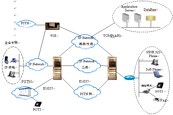 ESE/VSE作為電路到IP的接入網(wǎng)關(guān),可提供PSTN與IP網(wǎng)的互通。做為軟交換機(jī),可建設(shè)全I(xiàn)P方式的電話網(wǎng)絡(luò),并實(shí)現(xiàn)呼叫處理,路由,業(yè)務(wù)實(shí)現(xiàn)等功能。