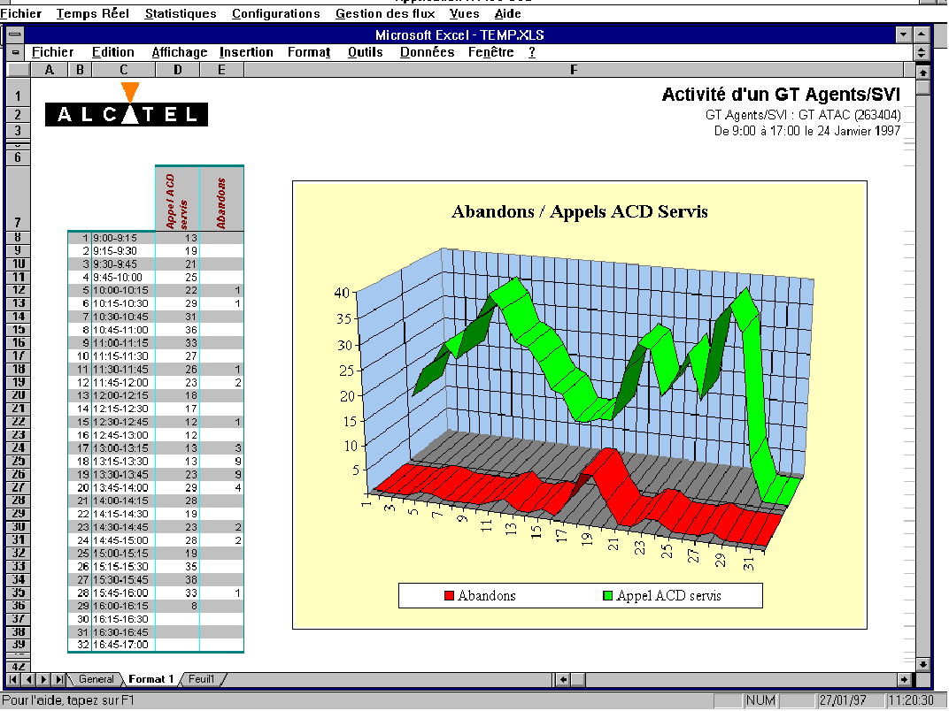 除了實時統計,A4400 CCS 用"Excel" 以擴展式清單和圖表形式提供詳細統計信息。而且,詳細的通話呼叫水平清單能下載到您的數據庫(以太網TCP/IP 協議的FTP)根據用戶的需要可作后期處理。