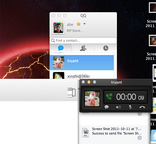 蘋果產(chǎn)品蘋果上的QQ客戶端QQ for Mac剛剛發(fā)布了最新版客戶端,主要增加了三個功能:語音聊天、通知欄消息提示、以及多文件傳輸。