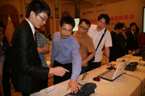 CTI論壇(ctiforum)4月25日消息(記者 潘婷婷): 廣東佳和通信技術有限公司主辦的首場企業(yè)智能通信體驗會,于2011年4月13日在廣州富力麗思卡爾頓酒店隆重召開,并取得圓滿成功。此次體驗會來自佳和通信的負責人和業(yè)內(nèi)專家就佳和企業(yè)智能通信平臺的應用以及協(xié)同辦公的發(fā)展趨勢發(fā)表了主題演講,為所有到場的100多位來賓做了詳實的介紹。同時展示了佳和“!毕盗械7個應用解決方案,并對拳頭產(chǎn)品——智能IP話機T600、移動分機M600、個人助理軟件IPA PRO等進行了現(xiàn)場演示和互動,其目的在于使現(xiàn)場嘉賓充分感受企業(yè)智能通信的價值和魅力,同時親身體驗到如何在在加速辦公自動化的同時提高企業(yè)效率、節(jié)約成本。