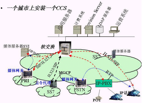 下一代電信網(wǎng)絡(luò)(NGN)體系結(jié)構(gòu)為新興的電信運(yùn)營商真正介入端到端的話音業(yè)務(wù)提供了契機(jī)。目前,銅纜資源為中國電信所壟斷,許多新興的電信運(yùn)營和寬帶運(yùn)營商正為如何真正介入語音電話而煩惱。但是隨著技術(shù)的進(jìn)步,語音編解碼的出現(xiàn),在IP網(wǎng)絡(luò)上傳送語音的技術(shù)已經(jīng)較為成熟。同時(shí)在下一代電信網(wǎng)絡(luò)體系結(jié)構(gòu)中解決了phone to IP-phone,IP-phone to phone 的地址映射問題,為新電信運(yùn)營商介入語音業(yè)務(wù)提供了技術(shù)手段。同時(shí),各個(gè)地方寬帶城域網(wǎng)、接入網(wǎng)的建設(shè),特別是寬帶接入網(wǎng)建設(shè)為基本為都提供了用戶提供10M速率的接入。而且寬帶接入網(wǎng)建設(shè)上的競(jìng)爭(zhēng)日益激烈,中國電信、長(zhǎng)城寬帶、聯(lián)通、網(wǎng)通都有一定的寬帶接入用戶的份額,為新興的電信運(yùn)營商介入語音業(yè)務(wù)提供了物理手段。隨著信息產(chǎn)業(yè)部對(duì)各電信運(yùn)營商互聯(lián)互通要求的加強(qiáng),為新興的電信運(yùn)營商介入語音業(yè)務(wù)提供了較好的可運(yùn)營環(huán)境。雖然目前在IP網(wǎng)絡(luò)上沒有提供Qos保證的機(jī)制,但IP骨干和接入網(wǎng)為用戶提供充足的帶寬同樣能做到較好的話音質(zhì)量。IP電話的出現(xiàn)也為有線網(wǎng)路介入話音業(yè)務(wù)提供了技術(shù)手段。同時(shí)目前在建成的寬帶接入網(wǎng)上應(yīng)用的只有上網(wǎng)業(yè)務(wù),如何增加寬帶接入的應(yīng)用,提高寬帶接入網(wǎng)的收入,是寬帶運(yùn)營商最關(guān)心的事情。我們能夠提供一整套的解決方案利用寬帶接入(五類線)為新興的寬帶運(yùn)營提供市話、長(zhǎng)話業(yè)務(wù)。