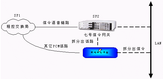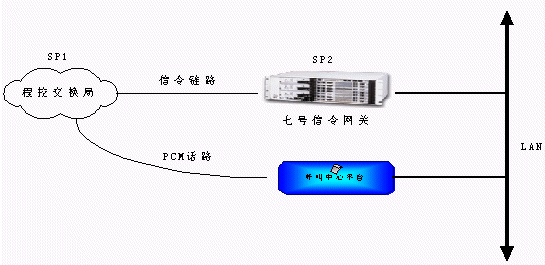 從程控端局送出來的信令和話路通過不同的PCM傳輸,信令鏈路接到七號(hào)信令網(wǎng)關(guān)轉(zhuǎn)換,通過消息方式傳遞到呼叫中心平臺(tái),而話路則直接通過PCM線連接到電信平臺(tái)上進(jìn)行話路連接。這種方式結(jié)構(gòu)明晰,有利于系統(tǒng)管理,大大增強(qiáng)了系統(tǒng)容量的擴(kuò)展能力。