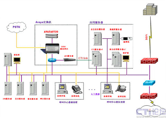 95190呼叫中心項(xiàng)目采用國際知名品牌AVAYA交換機(jī)作為系統(tǒng)接入處理,提供了包括數(shù)據(jù)庫服務(wù)器、文件服務(wù)器、CTI/IVR服務(wù)器、中間件服務(wù)器等相關(guān)后臺強(qiáng)有力的支撐服務(wù)設(shè)備,提供了三層網(wǎng)絡(luò)交換機(jī)、硬件防火墻等網(wǎng)絡(luò)設(shè)備等。整個(gè)系統(tǒng)達(dá)到960路中繼接入、180路人工座席、20路IP座席、360路IVR、15路傳真;支持7號信令、ISDN信令等信令協(xié)議;提供人工座席的實(shí)時(shí)同步錄音。