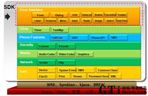 據(jù)新太科技內(nèi)部相關(guān)人員介紹,mWAY的技術(shù)架構(gòu),一方面可以支持電信網(wǎng)絡(luò)各種各樣的接入,保證和運營商已有的網(wǎng)絡(luò)的互聯(lián)互通,同時也支持和移動互聯(lián)網(wǎng)手機之間的連接,支持相關(guān)音頻、視頻的呼叫、傳送。業(yè)務(wù)接口可以給第三方應(yīng)對研發(fā)需求,手機終端有相關(guān)的引擎,滿足手機終端的業(yè)務(wù)研發(fā)的需求,這部分有一個手機客戶端軟件,是一個移動性的引擎。這個引擎移植在手機終端客戶端上,給上層提供統(tǒng)一的解析開放系統(tǒng)。
