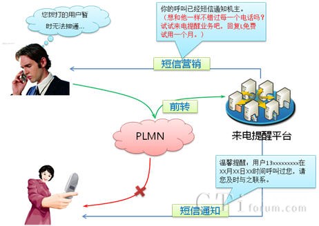 來電提醒業(yè)務是指被叫用戶在忙、無人接聽、不在服務區(qū)、關機等狀態(tài)下,使用來電提醒功能,享受到語音信箱、機主留言及機主特定留言等個性化和人性化的提醒服務,其有著傳統(tǒng)通信無可比擬的優(yōu)點。