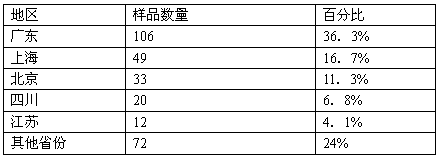 回收樣本的地區(qū)前5名: