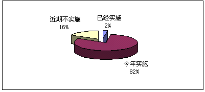 1)企業(yè)實施狀況,對大多數(shù)企業(yè)來說,對CRM還處于關(guān)注階段,只有7家企業(yè)表示已經(jīng)開始實施,在我們的電話訪問中,了解到這7家企業(yè)的實施的主要是在渠道管理和客戶呼叫中心等方面,但表示今年會開始實施的卻超過8成!
