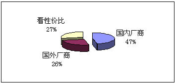 (5)向誰購買:鑒于國內(nèi)并沒有知名度很高的CRM實施廠商,而國外的著名廠商在國內(nèi)的品牌宣傳也不足,所以我們的調(diào)查表中只設(shè)了:國內(nèi)廠商、國外廠商和根據(jù)性價比進行選擇三個項目,與購買能力對照,預期實施金額在100萬以下的企業(yè),一般側(cè)重國內(nèi)廠商,而實施金額在100萬以上企業(yè)則側(cè)重國外企業(yè)。