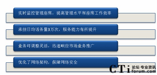 北京農(nóng)村商業(yè)銀行呼叫中心項(xiàng)目負(fù)責(zé)人在接受采訪時(shí)表示,從銀行的運(yùn)營管理角度而言,通過部署IPCC解決方案,實(shí)現(xiàn)了以下改變:一、實(shí)時(shí)監(jiān)控管理座席,提高了管理水平和座席工作效率;二、系統(tǒng)日承擔(dān)話務(wù)量3萬次,服務(wù)能力有所提升;三、可以靈活調(diào)整業(yè)務(wù),迅速相應(yīng)市場(chǎng)業(yè)務(wù)推廣;四、優(yōu)化了網(wǎng)絡(luò)架構(gòu),保障了網(wǎng)絡(luò)安全。
