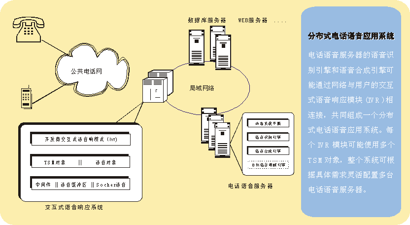 。 支持客戶服務(wù)器模式:可以將執(zhí)行傳統(tǒng)的電話語(yǔ)音流程的應(yīng)用系統(tǒng)作為客戶機(jī),使用專門的服務(wù)器提供語(yǔ)音識(shí)別的計(jì)算。