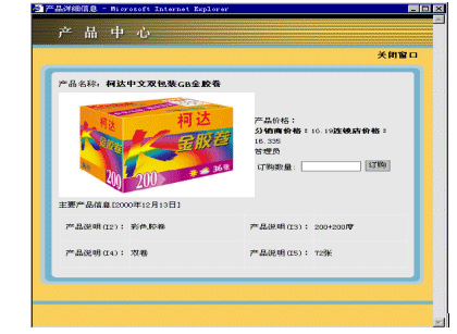 在用戶選擇一個分類時,此分類下的產(chǎn)品將會被列出。用戶可以直接在想要購買的產(chǎn)品后填寫購買數(shù)量,一次可以填寫多個產(chǎn)品。這樣在處理產(chǎn)品訂購的時候,大大的提高了效率。同樣,用戶也可以點(diǎn)擊詳細(xì)信息鏈接查看產(chǎn)品的詳細(xì)信息(參看圖2)。