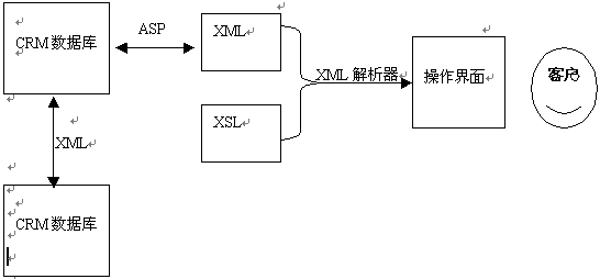 包括客戶資料,銷售報(bào)表等相關(guān)的客服信息都存儲(chǔ)在數(shù)據(jù)庫(kù)中,通過ASP應(yīng)用程序取出需要的數(shù)據(jù)生成符合條件的XML文檔,再通過安裝在服務(wù)器端的XML解析器按照預(yù)先設(shè)定的排版樣式XSL解析XML文檔,最后生成符合條件的HTML格式的CRM操作界面呈現(xiàn)在客戶面前?蛻魯(shù)據(jù)可能來自不同的數(shù)據(jù)庫(kù),并且都有各自不同的復(fù)雜格式。但客戶與這些數(shù)據(jù)庫(kù)間只通過一種標(biāo)準(zhǔn)語(yǔ)言進(jìn)行交互,那就是XML。由于XML的自定義性及可擴(kuò)展性,它足以表達(dá)各種類型的數(shù)據(jù)?蛻羰盏綌(shù)據(jù)后可以進(jìn)行處理,也可以在不同數(shù)據(jù)庫(kù)間進(jìn)行傳遞。
