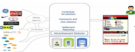 愛立信移動(dòng)互聯(lián)網(wǎng)業(yè)務(wù)營銷平臺(tái)(MSDP)有一整套對廣告提供商和廣告發(fā)布的管理手段,可以根據(jù)用戶偏好,在瀏覽過程中個(gè)性化插入廣告,實(shí)現(xiàn)精準(zhǔn)投放(如在體育類信息服務(wù)中使用體育用品廣告);或者基于規(guī)則定義廣告動(dòng)態(tài)插入的位置、時(shí)段、條件、頻度等(如按時(shí)間段自動(dòng)更換廣告內(nèi)容);還可在頁面瀏覽中動(dòng)態(tài)加入運(yùn)營商標(biāo)識(shí)或其它預(yù)定內(nèi)容。