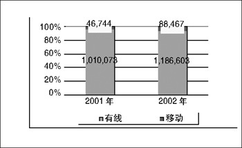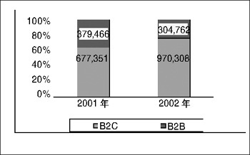 各種類型游戲在整個(gè)游戲市場中所占的比例(2001年 / 2002年)
