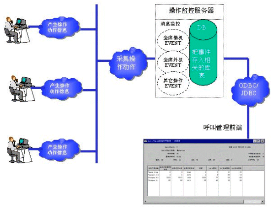 這種方案的主要優(yōu)點(diǎn)是信息非?焖俸蜏(zhǔn)確,由于消息來(lái)源只和坐席的操作動(dòng)作有關(guān),并且中間沒有其它中轉(zhuǎn)系統(tǒng),所以不會(huì)出現(xiàn)坐席已經(jīng)掛機(jī)2秒后,管理系統(tǒng)還顯示坐席通話的情況。