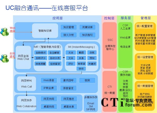 IM (Instant Messaging)即時消息是一種新興的互聯(lián)網(wǎng)交流方式,它具有實時性、在線性等一些很好的特性.目前IM已經(jīng)成為繼Email、Web之后的第三大互聯(lián)網(wǎng)應用,基于IM的各種應用、技術(shù)也在不斷的擴展;隨著網(wǎng)絡技術(shù)的飛速發(fā)展以及IM即時消息豐富的功能、成熟的應用、標準的接口協(xié)議、實時在線的溝通能力,IM進入聯(lián)絡中心的架構(gòu)體系也是必然,IM也正在成為在線客服系統(tǒng)的一把“利器”。通過與聯(lián)絡中心的整合,實現(xiàn)統(tǒng)一排隊路由,統(tǒng)一的管控,在為客戶提供即時高效應答的同時,企業(yè)可隨時掌握整個交互過程與細節(jié),實現(xiàn)接入可管、流程可控、記錄可查的聯(lián)絡中心體系。