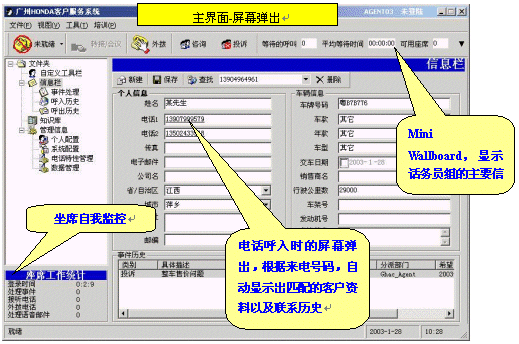 當(dāng)客戶的電話被轉(zhuǎn)到客戶服務(wù)人員時(shí),客戶的所有相關(guān)信息將自動(dòng)彈出顯示在服務(wù)人員的電腦屏幕上,包括歷史接觸記錄信息等,這樣就能提供最具有針對性和高效率的服務(wù)。如果是新客戶,那么服務(wù)人員將即時(shí)錄入信息,動(dòng)態(tài)擴(kuò)充數(shù)據(jù)庫。