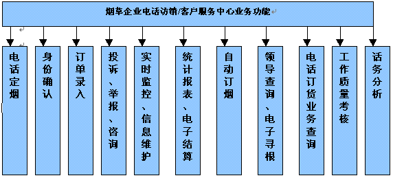 隨著國內煙草專賣體制市場化進程的不斷推進,在煙草全行業(yè)建立以"電話訂貨、網上配貨、電子結算、現代物流"為基本特征的現代流通體制已經成為必然的選擇,實現煙草專賣體制下舊的和落后的營銷體制向現代營銷體制的轉變。煙草企業(yè)建立電話訪銷/客戶服務系統(tǒng)的目標是最大程度地提高客戶的滿意度,其核心是實現高水平的建設水平,提高企業(yè)對市場的控制力,最終保證企業(yè)擁有持續(xù)的競爭力和良好的贏利。