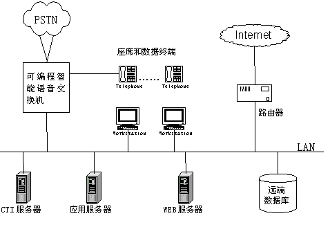 新一代呼叫中心主要由可編程智能語音交換機、業(yè)務代表座席、CTI服務器、