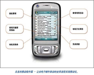 目前,無線電子郵件已經(jīng)成為最受移動設備用戶歡迎的應用:它是一種簡單而高效的方法,工作人員可以隨時隨地保持聯(lián)系,進行溝通。然而,要讓工作人員在戶外保持像使用臺式計算機那樣的效率,無線電子郵件僅僅邁出了第一步。全天候的移動執(zhí)行力要求即使員工不在辦公室,也必須保證業(yè)務的連續(xù)性。由電子郵件驅動的業(yè)務流程,例如采購單、銷售訂單審批或租用申請都需要迅捷的行動,但目前這些流程只能借助臺式或便攜式計算機來完成。