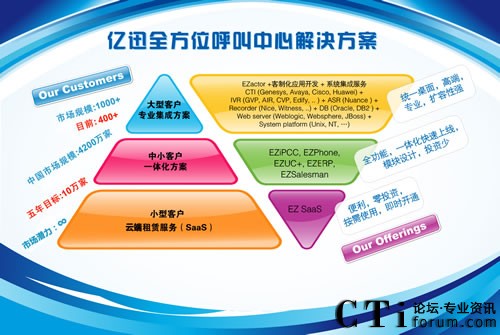 3、CTI論壇記者:億迅從1999至今,一共開創(chuàng)了400多家大型企業(yè)客戶,據(jù)了解億迅在未來五年目標設定為再開創(chuàng)十萬家客戶,請問億迅將如何達到上述目標?