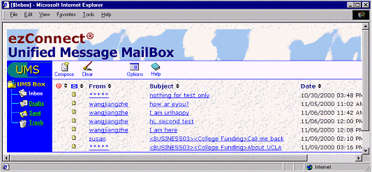 ezConnect的統(tǒng)一信息處理系統(tǒng)可以在同一個(gè)界面處理客戶交互請求,例如文字信息、網(wǎng)頁表格、電子郵件、語音郵件和傳真。從同一個(gè)UMS信箱,呼叫中心座席可以: