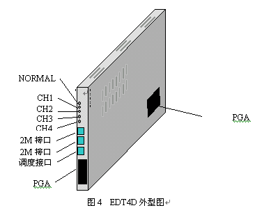 EDT4D是在舊EDT4板上增加調度接口。見圖4,EDT4D為一塊H20-20交換機插板,厚度為兩個槽口。EDT4通過扁平電纜與交換機公共控制機柜的背板PGA相連,提取交換機時隙;并將時隙轉換為由四個數字中繼接口E1組成的準V5.2接口與遠端模塊相連。一塊EDT4可接2個PGA端口組,共128個話路。