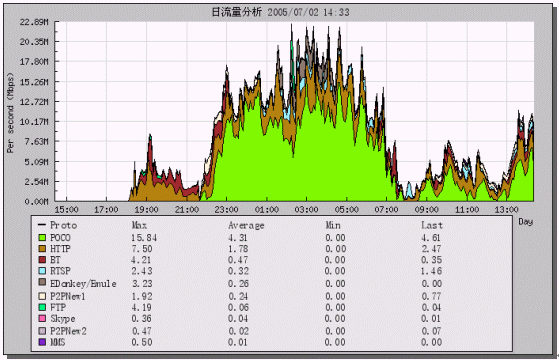 7月1日,網(wǎng)管中心在陽泉CMNet匯聚層進行了流量分析工作。