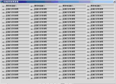 | 硬件配置 | 1、自動語音應(yīng)答系統(tǒng): PC機或工控機(PIII800 CPU/256M內(nèi)存/40G硬盤/)Dialogic模擬語音傳真卡(VFX/40ESC plus) Dialogic 座席卡(MSI/80SC) 2、人工座席系統(tǒng):聯(lián)想中高端商用電腦 3、數(shù)據(jù)庫系統(tǒng):聯(lián)想萬全工作組級和部門級服務(wù)器 |