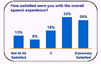 之所以商業(yè)人士選擇自動化的語音服務(wù)是因?yàn)樗芴峁└匀粷M意的服務(wù)給客戶,而不是通過麻煩的鍵盤式或按鍵電話式的操作系統(tǒng)。毫無疑問,大多數(shù)的使用者(61%)對最近使用的語音服務(wù)系統(tǒng)表示了極高的滿意度。