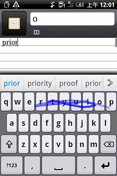 這里我們選取全鍵盤(pán)布局方案來(lái)測(cè)試本次的滑行輸入。首先是單行輸入,我們通過(guò)快速的手指滑行分別輸入“prior” “were”,單詞被準(zhǔn)確識(shí)別。