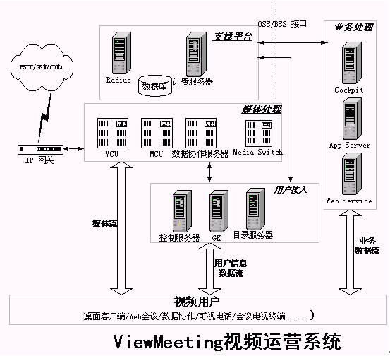 發(fā)展寬帶視頻業(yè)務(wù),提供寬帶視頻通信解決方案是優(yōu)視風(fēng)的宗旨,利用ViewMeeting平臺(如圖1所示),運營企業(yè)可以制定針對不同用戶需求的不同視頻業(yè)務(wù),使視頻業(yè)務(wù)能夠普及到更廣的用戶范圍中。