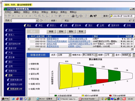 國內(nèi)軟件企業(yè)在實踐中感受客戶需求,同時接受根據(jù)國外CRM的思想,摸索創(chuàng)造出CRM產(chǎn)品,比較典型的是廣智銷售型CRM。廣智公司是廣東比較成功的圖書軟件的開發(fā)商,在圖書軟件的推廣過程中遇到客戶關系管理的問題,然后研發(fā)了廣智銷售型CRM。