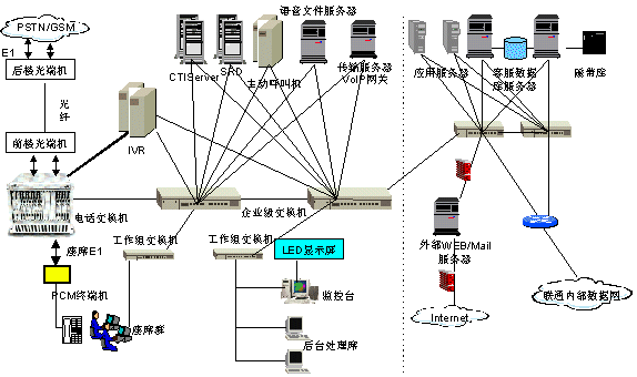 系統(tǒng)提供話務(wù)功能(例如:三方通話)、質(zhì)檢管理功能(例如:全程全席錄音)、系統(tǒng)管理功能(系統(tǒng)可視化配置、業(yè)務(wù)數(shù)據(jù)維護(hù))、系統(tǒng)監(jiān)控功能(例如:大屏幕聲光報(bào)警)、流程監(jiān)控功能(例如:對(duì)投訴處理監(jiān)控)、基本業(yè)務(wù)功能(業(yè)務(wù)咨詢、業(yè)務(wù)受理、話費(fèi)查詢、投訴建議、分銷商服務(wù)、大客戶服務(wù)、緊急服務(wù)等)、報(bào)表統(tǒng)計(jì)與信息查詢分析功能和增值業(yè)務(wù)功能(例如:新業(yè)務(wù)宣傳)等等。
